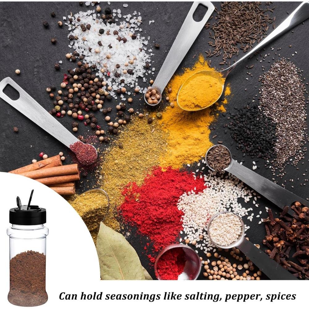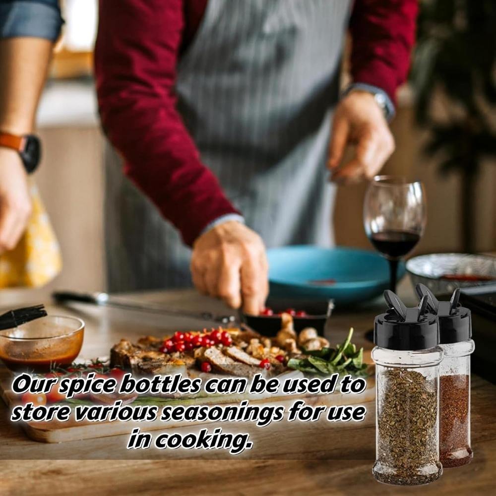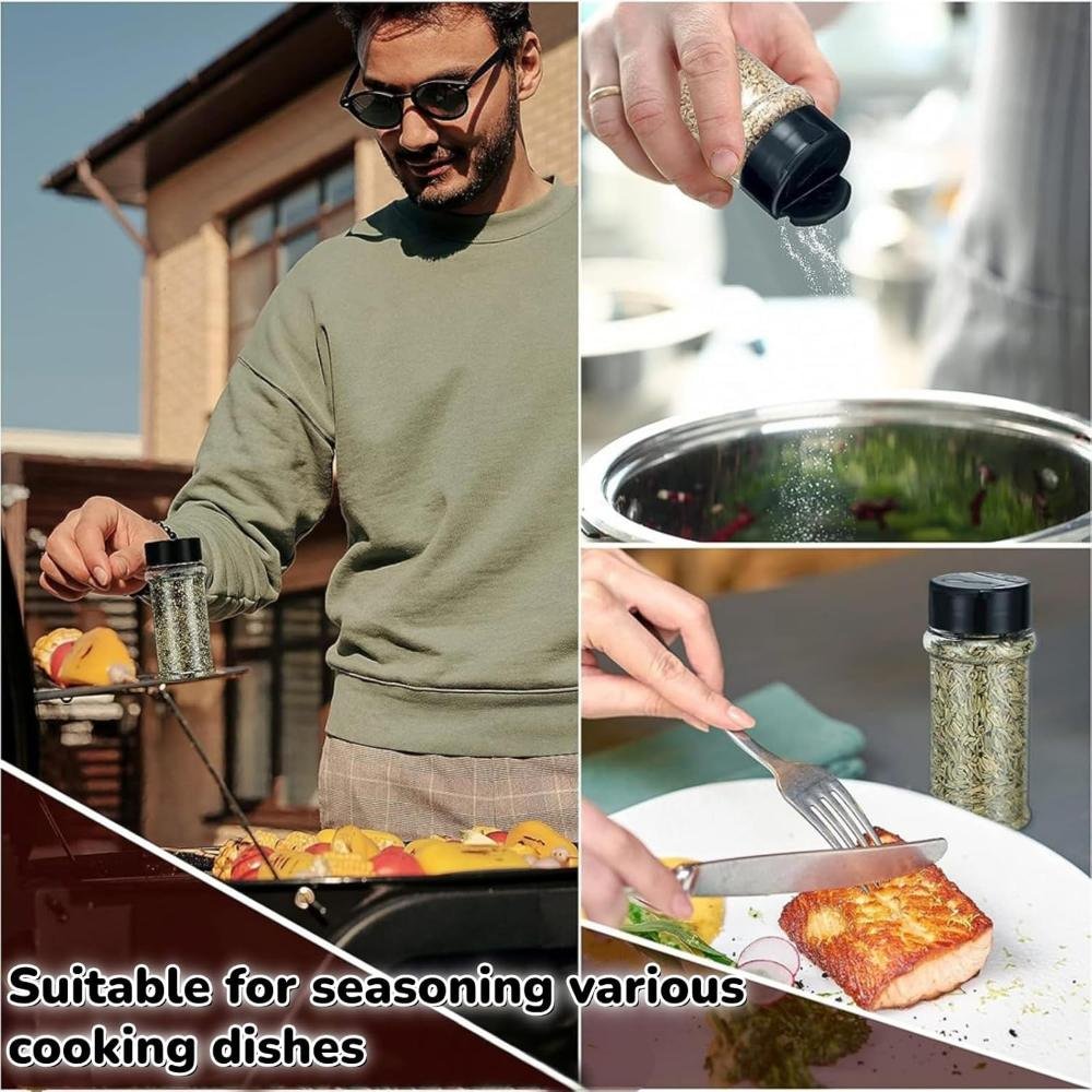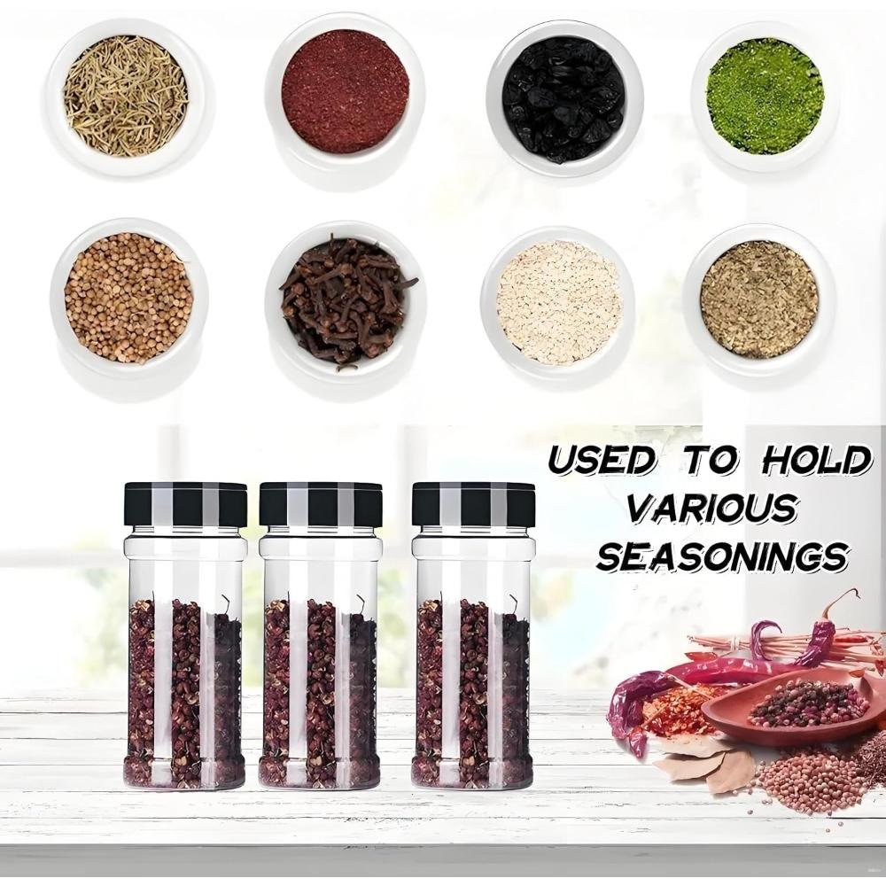 Made from high-quality, food-grade PET plastic, these jars are lightweight, durable, and safe for long-term spice storage. The transparent body allows quick identification of contents, helping you save time while cooking. Each jar comes with a two-sided sifter shaker lid featuring both sprinkle and pour options, giving you complete control over seasoning quantity. The tight-fit black lid helps preserve freshness, aroma, and flavor by protecting spices from moisture and air.