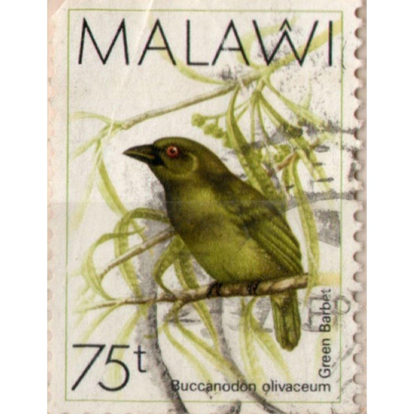 Stamp: 75 Malawi Buccanodon Olivaceum Green Barbet