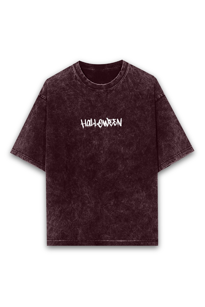 Buy Halloween Text Printed Acid Wash Oversized Classic Unisex T-Shirt on Lottzo.com | Lowest Price Shirt Deals | Mens T-Shirt | Men Fashion Online Store | Online Shopping in India