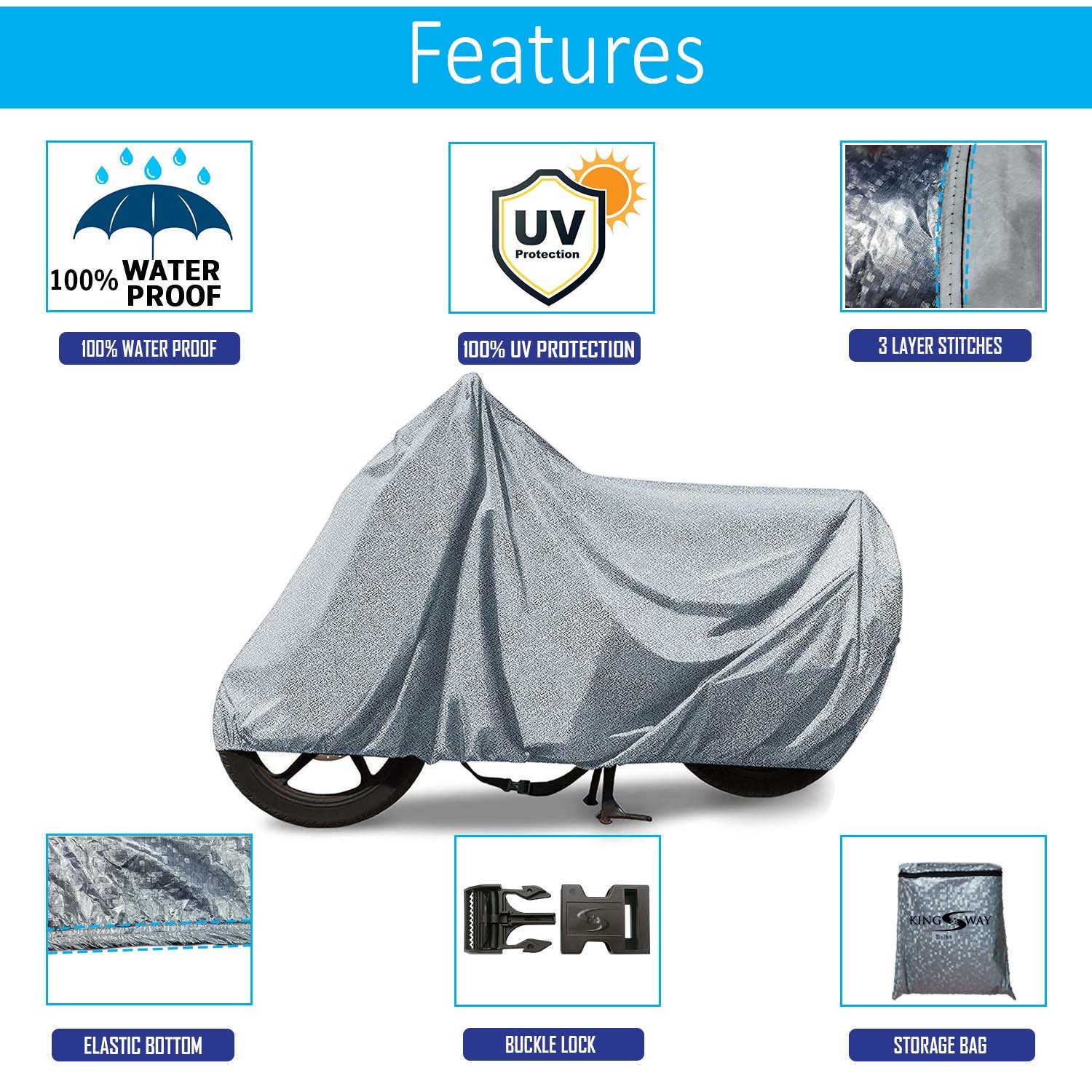 Buy Metallic Silver Waterproof Bike Body Cover with Carry Bag on Lottzo.com | Lowest Price Two Wheeler Accessories Deals | Best Price Bike Accessories Deals | Offers Online Store | Online Shopping in India